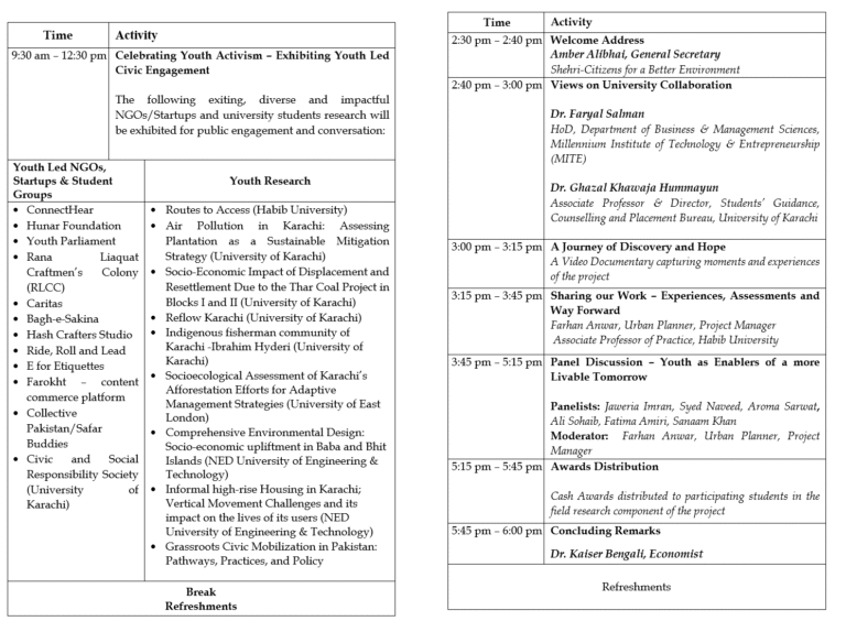 Shehri-Citizens for a Better Environment (Shehri-CBE) held a concluding workshop to mark the completion of the “Youth Empowerment for Engaged Citizenship” project. The initiative established a framework for higher education institutes, including the University of Karachi, Habib University, and the Millennium Institute of Technology & Entrepreneurship (MiTE), to incorporate civic education and social mobilization into academic spaces.