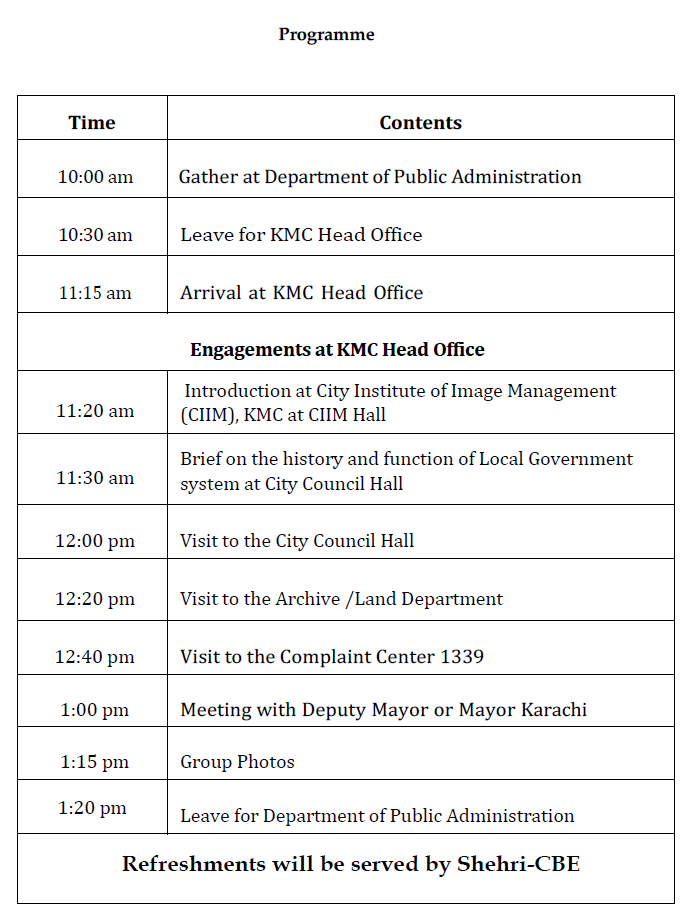 Leadership Engagement: A highlight of the visit included a scheduled meeting with the Mayor or Deputy Mayor of Karachi, providing students with direct access to elected officials.