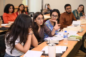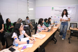 The session opened with an interactive presentation on the project’s mission to create a replicable model of civic education within academic institutions. Students were introduced to fundamental concepts of citizen-state relations, governance mechanisms, and the policy-making ecosystem, with specific references to challenges and opportunities within Sindh and Karachi.