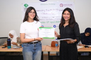 The third Orientation Session of the project “Youth Empowerment for Engaged Citizenship” was held at Habib University on April 12, 2025. Organized by Shehri – Citizens for a Better Environment, the session engaged a dynamic group of students in critical conversations around civic identity, democratic values, and youth-led policy engagement.
