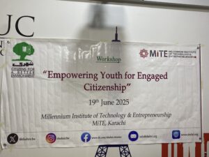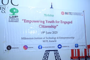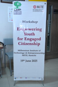 The Millennium Institute of Technology & Entrepreneurship (MiTE), in collaboration with the Department of Business & Management Sciences, hosted a highly engaging panel discussion under the banner of the “Youth Empowerment for Engaged Citizenship” initiative. Held on June 19, 2025, the event aimed to inspire and educate university students about their critical role in public policy, civic engagement, and urban governance. The session began with an interactive learning activity where students explored the structure and responsibilities of the Executive Branch of Government and worked in groups on real-world governance challenges. Facilitated by urban planning expert Mumtaz Ali, this session encouraged creative thinking and collaborative problem-solving.