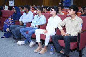 The event culminated in a powerful panel discussion featuring key voices from Karachi’s civic and administrative landscape. Esteemed panelists included Mr. Tariq Ali Nizamani, Managing Director of the Sindh Solid Waste Management Board (SSWMB); Mr. Iqbal Ahmed Detho, Chairperson of the Sindh Human Rights Commission; Mr. Shahid Jatoi, Information Commissioner at the Sindh Information Commission; Mr. Masood Alam, Project Coordinator for the Competitive & Livable City of Karachi (CLICK) project; and Mr. Amjad Rafi, DSP Traffic, Karachi. These distinguished speakers shared their professional experiences, addressed challenges in service delivery, and emphasized the importance of youth participation in public sector development. The discussion bridged theory and practice, empowering students to become informed, proactive citizens capable of contributing to inclusive, transparent, and sustainable urban governance.