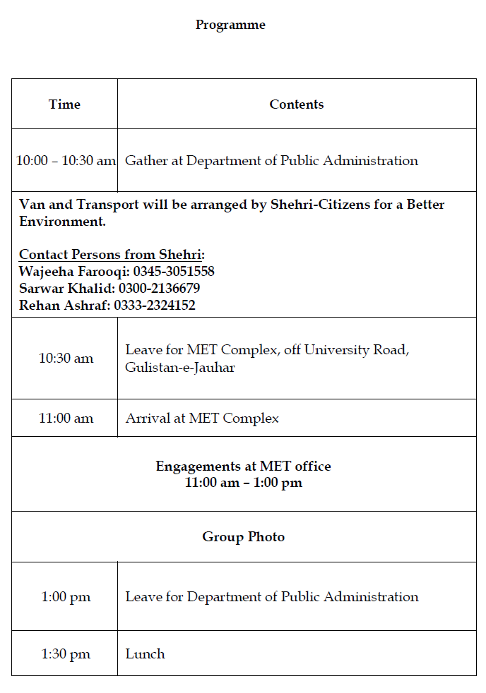 Shehri-Citizens for a Better Environment (Shehri-CBE) successfully arranged an exposure visit for students from the Department of Public Administration, University of Karachi, to the Pakistan Meteorological Department (PMD) as part of the project “Youth Empowerment for Engaged Citizenship”.